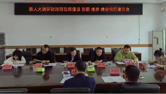 4月12日,县人大财经委(常委会预工委)到县财政局调研全县财政项目库建设、彩票、债券、债务情况等情况并召开座谈会。县人大常委会党组副书记、副主任龙要平出席会议并讲话。县财政局主要负责人、分管负责人及相关股室工作人员参加会议。