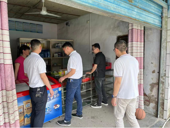 在烟溪镇中学,胡能新走进学校食堂、商店,细致查看食堂的各个功能区域,重点对食堂内环境卫生、设施设备消毒、清洗,食品原料进货、后厨加工制作、每餐食品留样等情况进行检查,详细了解了学校食品安全管理制度与措施。