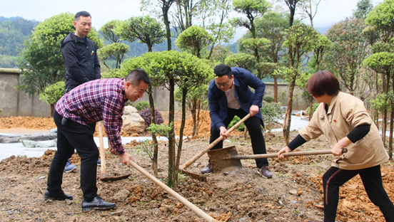 在烟溪中学植树现场,有的挥锹铲土、有的培土种植,认真细致完成每一道工序,现场一片热火朝天。通过两小时的辛勤劳动,数百株树苗迎风伫立、生机盎然,为美丽烟溪再添新绿。