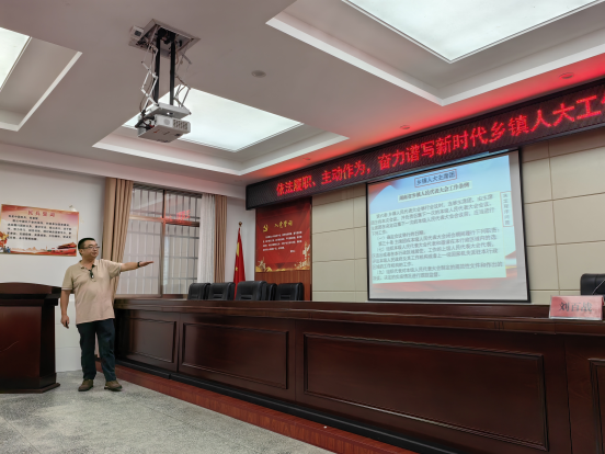 刘百战围绕依法履职、主动作为,奋力谱写新时代乡镇人大工作新篇这一课题,从乡镇人大的性质、开展乡镇人大工作的主要政策法律依据、乡镇人大的职权、选举罢免权的行使、决定权的行使、监督权的行使、乡镇人大如何更好地行权履职等七个方面进行讲授,课堂氛围热烈、内容贴近实际,有效地指导了代表应当如何履职、如何作为。 培训结束后,代表们纷纷表示,通过本次培训班,对人大预算审查与监督、人大代表行权履职等问题有了更深入的理解。我们要牢记肩负着的责任与使命,加强学习、认真履职,为谱写新时代乡镇人大工作新篇章贡献力量!
