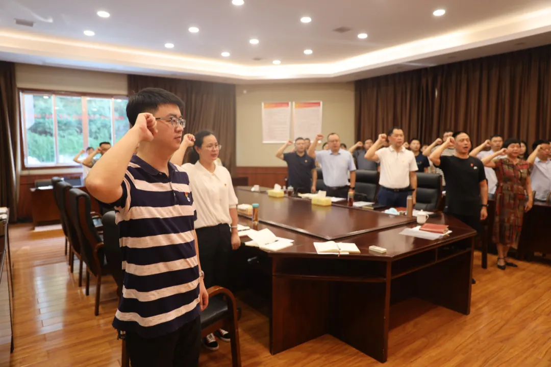 会议期间,全体党员集中缴纳了党费,重温了入党誓词,集中学习了《省委组织部关于全面加强五大体系建设整体推动干部高质量发展的实施意见》和《中国共产党组织工作条例》等文件。最后,全体党员分党小组围绕“学党史、悟思想、办实事、开新局”这一主题,谈学习习近平总书记“七一”重要讲话精神的心得体会,对照党史学习教育目标要求,逐一发言,讲收获提高,讲差距不足,开展自我批评和批评。