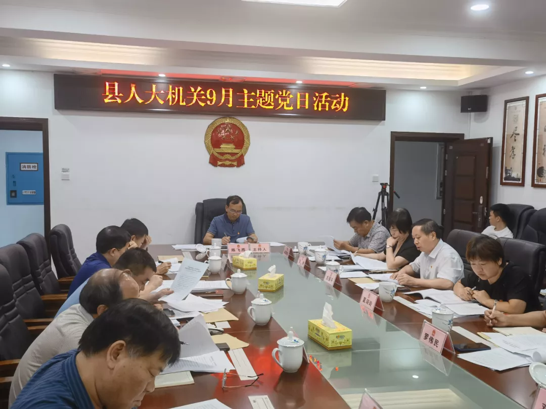 县人大常委会党组理论中心组开展集中学习暨9月份主题党日专题研讨