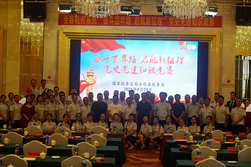 为庆祝中国共产党百年华诞,迎接中华人民共和国成立72周年,进一步推动全县税务系统党史学习教育走深走实,9月23日,安化县税务局举办“奋斗百年路  启航新征程”党史党建知识抢答赛,由各支部选派的27名选手组成9支队伍,进行了一场党史党建知识的精彩对决。县委党史学习教育巡回指导组组长李国祥、县委两新工委专职副书记宁毅、县委组织部组织科科长刘辉出席了活动。