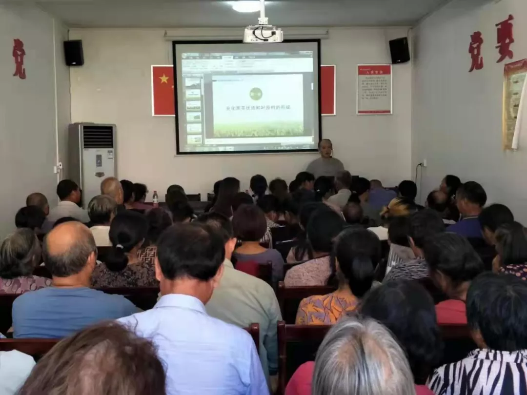 9月26日,移民库区事务中心聘请农业农村局高级农艺师杨德盛教授在马路镇碧丹村就茶园种植及培养、管理、茶叶加工等为碧丹村农户授课答疑解惑,此次培训共计101人参加。