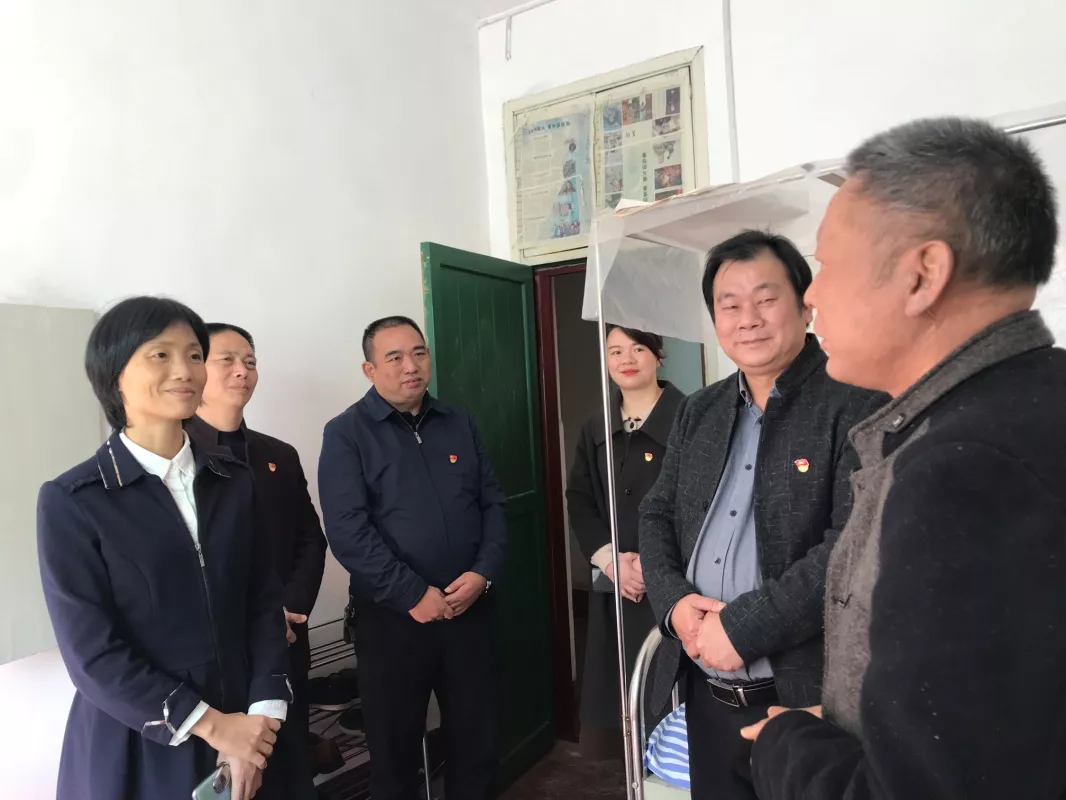杨爱云一行首先来到益阳市大福皮肤病防治所,详细了解皮防所的建院情况、住院病人的总体情况。她十分关心麻风病人的身体和生活情况,对他们能享受免费治疗、免生活费的国家兜底政策,过上健康、舒适的康养生活,表示欣慰、满意,这是党和国家的好政策,勉励大家共同建设好这座“精神家园”,将爱传递给社会大众。
