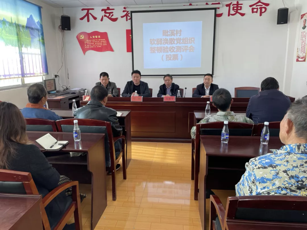 会上,毗溪村支部书记贺见群汇报了该村开展软弱涣散党组织整顿工作情况。今年,毗溪村因组织动员能力弱、带富能力不强、集体经济薄弱、在群众中威信不高,被定性为软弱涣散党组织。半年多以来,经过有针对性的集中整顿,加强了村“两委”班子的规范化制度化建设,制订了村级集体经济发展规划,有效提升了服务群众的能力。同时,围绕乡村振兴五大总体要求,积极谋划做好乡村振兴和村级建设各项工作,不断提升了村党支部的带富致富能力。