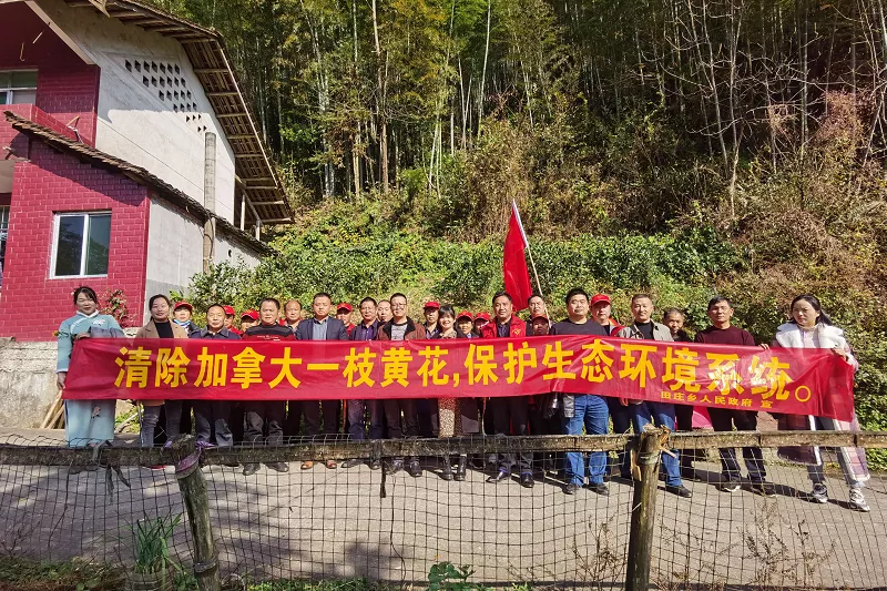 田庄乡干部培训学院以清除外来入侵物种“加拿大一支黄花”为契机,组织40余人的结对帮带导师和学员队伍在白沙溪村开展“清除加拿大一支黄花,保护生态环境系统”现场实践活动。通过聘请县农业农村局植物学专家在现场进行理论解说,让大家弄懂了“加拿大一枝黄花”会抑制其他植物的生长,改变生态系统的结构和功能。并通过“手把手”教学为学员提供无害处理入侵植株示范,让学员们在干中学、学中干,不断积累经验、加快成长。
