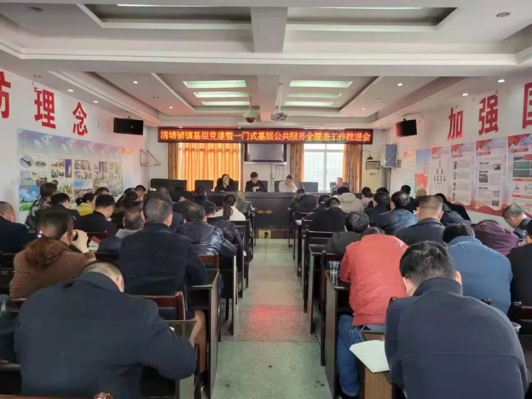 为切实加强基层党组织核心引领作用,全面提高基层公共服务水平。12月13日上午,清塘铺镇召开基层党建暨基层公共服务一门式全覆盖工作推进会,全体在家的党政班子成员、机关干职工、各村(社区)第一书记、驻村(社区)队长参加会议。