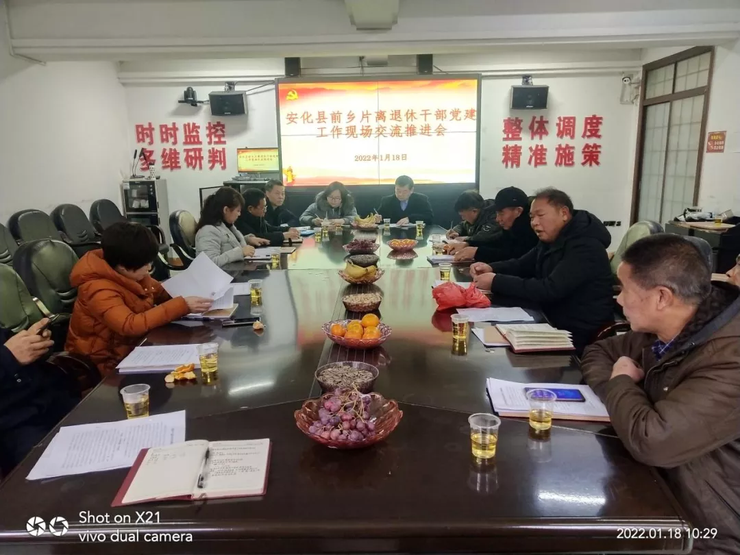 1月18日,安化县前乡片老干部在清塘铺镇召开离退休老干部工作交流会。县委组织部三级调研员贺民生和前乡片离退休支部书记等参加。