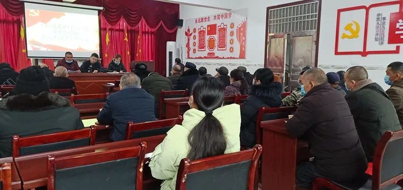 1月25日,大福镇孟家村党支部举行2021年度年终总结暨双述双评工作会议,村党支部、驻村工作队以及全体党员参加会议。