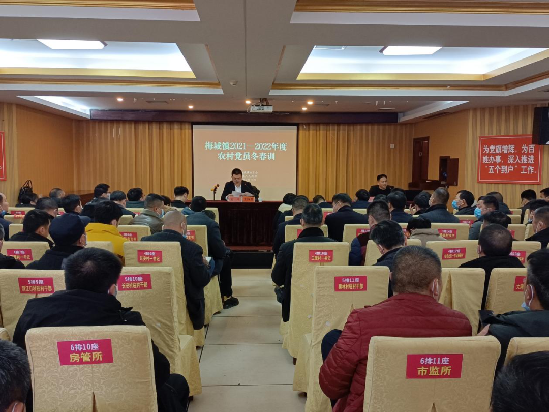 2月14日至15日,梅城镇组织召开2021-2022年度农村党员冬春训,在家党政班子成员、中层骨干,各村(社区)第一书记、驻村干部、村(社区)支两委成员、在家农村党员接受集中“充电”。