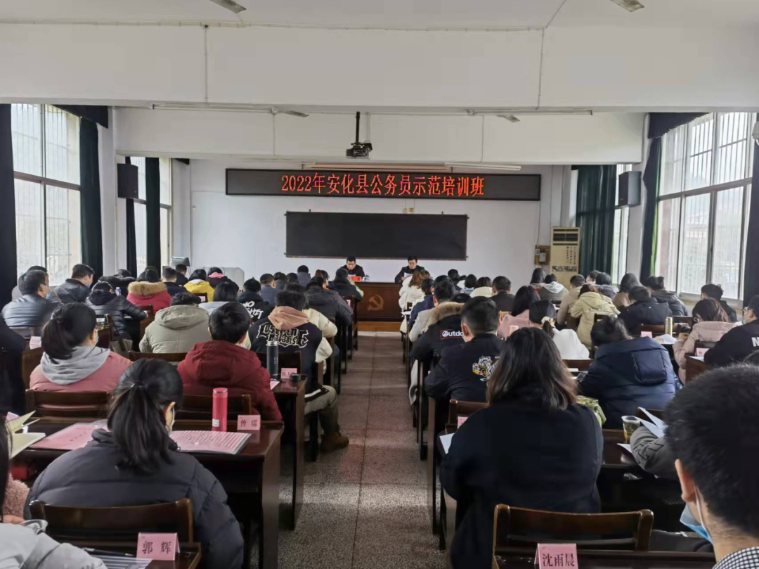 此次示范培训是安化县贯彻落实新时代基层干部主题培训计划的重要安排,重点突出学习基础理论、能力素质、党性修养、基层治理等内容,开设《习近平法治思想》《十九届六中全会精神解读》《以“五个敢不敢”涵养党员干部的精气神》《加强基层治理体系和治理能力现代化建设》《新时代公务员要提高应急处突能力》《党风廉政建设》等课程,旨在帮助广大公务员筑牢思想之基,补足精神之钙、领会基层治理之要,提升服务发展之能,引导广大公务员把自己摆入安化发展的大局之中,融入产业发展三大竞赛之中,投入乡村振兴的大潮之中,全面解放思想,破除思维禁锢,在工作中准确识变、科学应变、主动求变,敢闯、敢拼、敢创新,紧紧围绕聚焦“三高四新”战略、服务“五个益阳”建设和安化“一四五”战略,推动安化经济社会高质量发展。