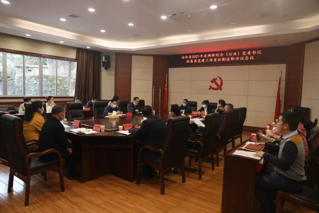 3月15日,安化县召开2021年度两新综合(行业)党委书记抓基层党建工作责任制述职评议暨县委两新工委2022年第一次全会,两新综合(行业)党委书记、两新工委成员单位负责人及全体专职党建指导员等40余人参加。会议分两新综合(行业)党委书记述职评议暨县委两新工委2022年第一次全会、两新专职党建指导员座谈会两个阶段进行。县委组织部副部长、县委两新工委书记李远胜全程参加并讲话。