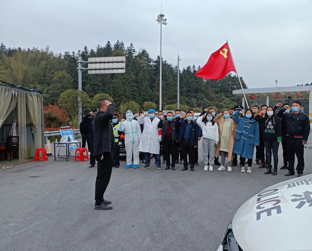 镇党委第一时间在平洞高速龙塘东出口设置疫情防控咨询服务站,组建由党政班子带队的疫情防控咨询工作组,并迅速成立临时党支部。临时党支部书记带领20余名党员在党旗下庄严宣誓,让鲜红的党旗高高飘扬在疫情防控第一线。用党组织的战斗堡垒筑牢疫情防控一线的第一道关卡。