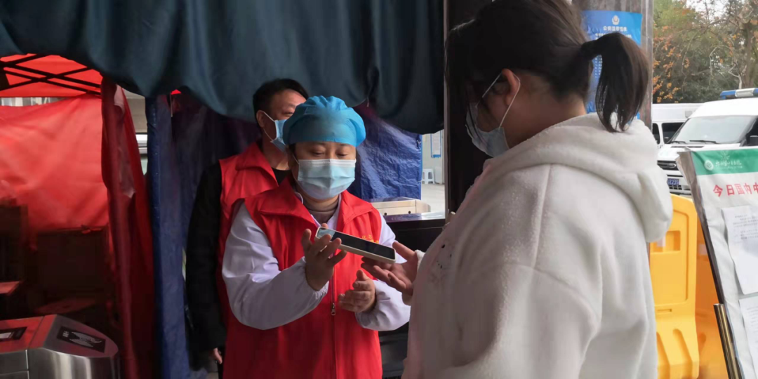 院内“守阵队”。面对疫情防控形势,预检分诊工作流程更为细化,为提高预检效率,缓解就诊压力,15名党员志愿者组成了一支“守阵队”,协助执行预检分诊任务,守好第一道关卡。