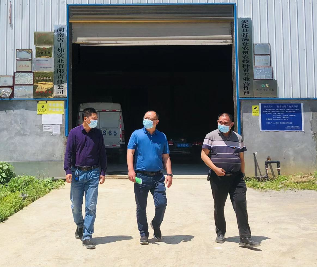 钟曙波一行还来到木溪村丰炜实业有限公司,了解了大米种植与销售模式及市场对安化富硒大米的反馈、认可情况。实地查看了育秧大棚中早稻大田秧苗的长势情况。重点指导了智慧生态防控景观灯的生产情况,并针对景观灯的外观提出要升级仿古的要求,更好地融入使用者周边环境,达到实用美观兼具、生态和谐统一的良好效果。