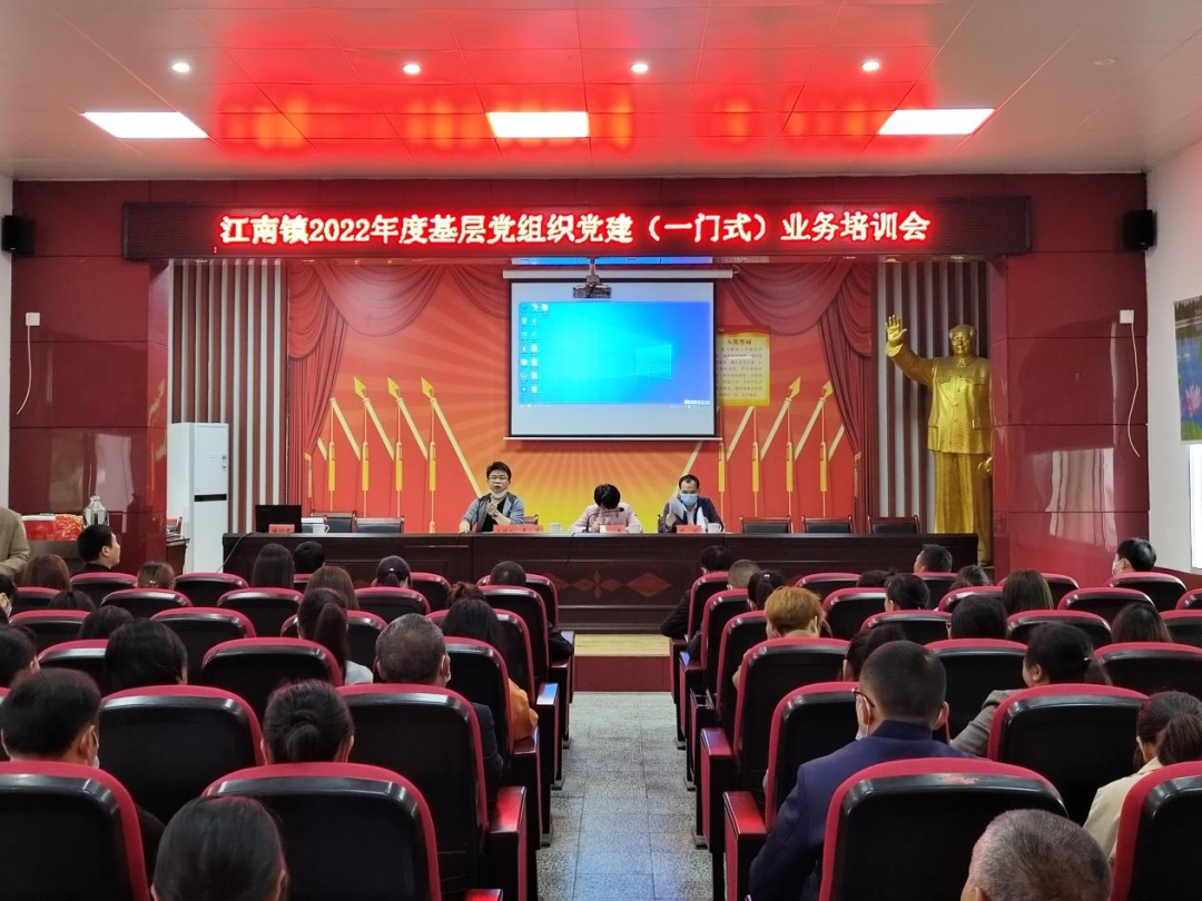 为全面增强江南镇基层党组织凝聚力和战斗力,切实提高基层党务工作者的综合业务能力,进一步强化抓好党建履职尽责的责任意识。5月11日上午,江南镇组织开展了2022年度基层党组织党建(一门式)业务培训会,会议邀请县委组织部基层办负责人和镇相关业务骨干进行授课。镇党委班子成员、各村(社区)党组织书记、驻村第一书记、党建专干、便民服务员、两新党组织负责人参加。