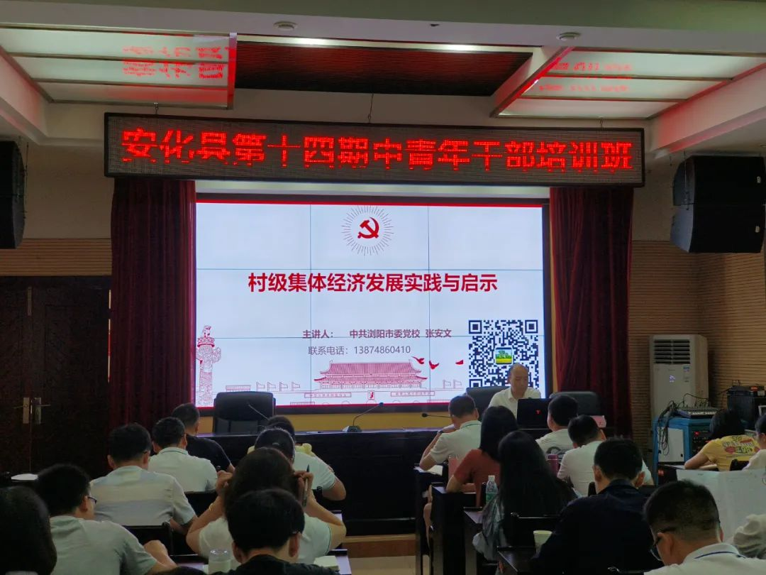 6月14日,浏阳市委党校副校长张安文以《发展壮大集体经济的实践与探索》为题,为安化县第十四期中青年干部培训班,讲授了一堂内容详实的农村新型集体经济发展教学课。