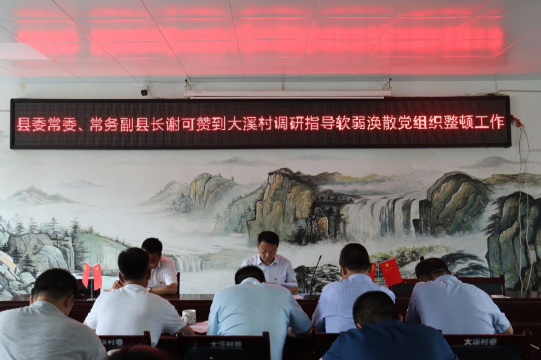在大溪村便民服务中心,谢可赞现场查看了软弱涣散党组织整顿工作相关台账,与大溪村“两委”干部进行了谈心谈话;湖南日报社驻大溪村乡村振兴工作队就前段工作情况做了详细介绍,联村镇领导就大溪村上半年来村支两委班子建设和村风村貌变化情况做了具体汇报。谢可赞对驻村工作队的辛勤工作表示慰问和鼓励,对大溪村党组织整建提质取得的初步成效表示肯定,并寄予再接再厉、向上向好的殷切期望。