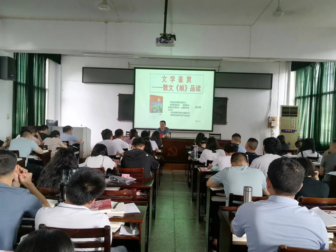 “没有娘的孩子,家是残缺的、空虚的、没有生气的。没有娘的孩子,再大的孩子都是无家可归……现在,我就是那个无家可归的孩子。我把娘弄丢了。我无家可归了……”这就是作家彭学明所写的一部献给母亲的长篇纪实散文——《娘》。7月6日,安化县农商银行副行长、中国作家协会、电影协会、电视艺术家协会、金融作家协会会员杨文辉为安化县第十四期中青年干部培训班学员深情品读彭学明的长篇纪实散文《娘》。