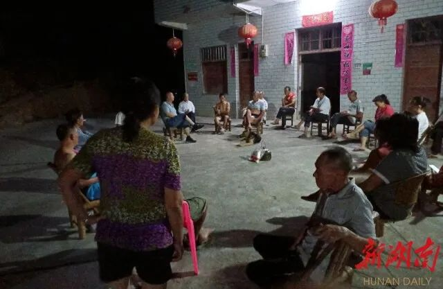 石膏村村民参加屋场会。吴赏 摄石中公路始建于上世纪90年代,是石膏村出入的必经之路,也是村民子女的求学之路。安化县交通运输局多方争资完成路面硬化,随着农村生活水平的提高,车辆大幅增多,通组路难以满足群众出行需求。为此,村支两委划分任务段,插上党旗,组织村党员、乡贤、群众募捐,启动组级公路扩改。在人居环境整治中,该村组建志愿服务队伍,结合“清五堆”“治五乱”,对村公共区域进行拉网式排查、集中式清理,累积清理各类垃圾5吨、各类杂物近20吨,整治“五乱”现象100处,整改率达到100%,村容村貌大为改观。