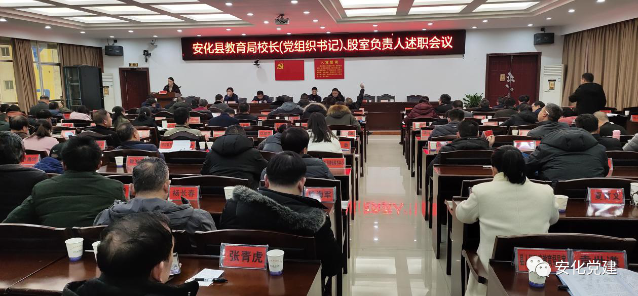 “2021年,我校将坚持党建引领,紧扣学校十四五发展规划,落实学校整体搬迁规划,……推动党建与学校中心工作深度融合,着力提升党建实效化水平,深化产教融合校企合作,打造乡村振兴人才培养优质校。”安化县职业中专学校党委书记、校长刘迪凡在2020年全县教育系统党组织书记、校长、股室负责人述职评议会议上描绘着学校发展美好蓝图。 1月27日,安化县教育局组织全县教育系统党组织书记、校长、股室负责人召开述职评议大会,全县6所普通高中、县职业中专、23个乡镇中心学校、江英学校党组织书记、校长及29个股室负责人等共计60人述职。各位述职对象结合基层党建情况对所管辖领域所获成绩、工作不足进行回顾,对来年工作做了展望。局党组(工委)分管(联点)领导对述职对象逐一进行了辣味十足的点评,在充分肯定成绩的同时,一针见血地指出了党建及业务工作存在的问题。局机关100余人参加会议并对述职对象开展现场述职评议测评。 会上,县教育局党组书记、局长刘唐业在总结讲话中表示,全体述职人员认真客观盘点了一年来的工作,特别是对来年工作思路比较清晰,体现了严谨的工作作风。他要求,述职人员要扬长避短,取长补短,勇担使命,扛鼎一方,在来年工作中,要突出质量核心意识,切实做到坚持党建引领提质量,坚持五育并举促质量,坚持落实常规抓质量等八个坚持,奋力推进安化教育高质量发展。 |