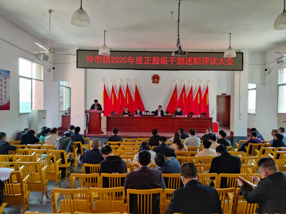 2月22日,冷市镇召开2020年度正股级干部述职评议大会,全体机关干职工参加。