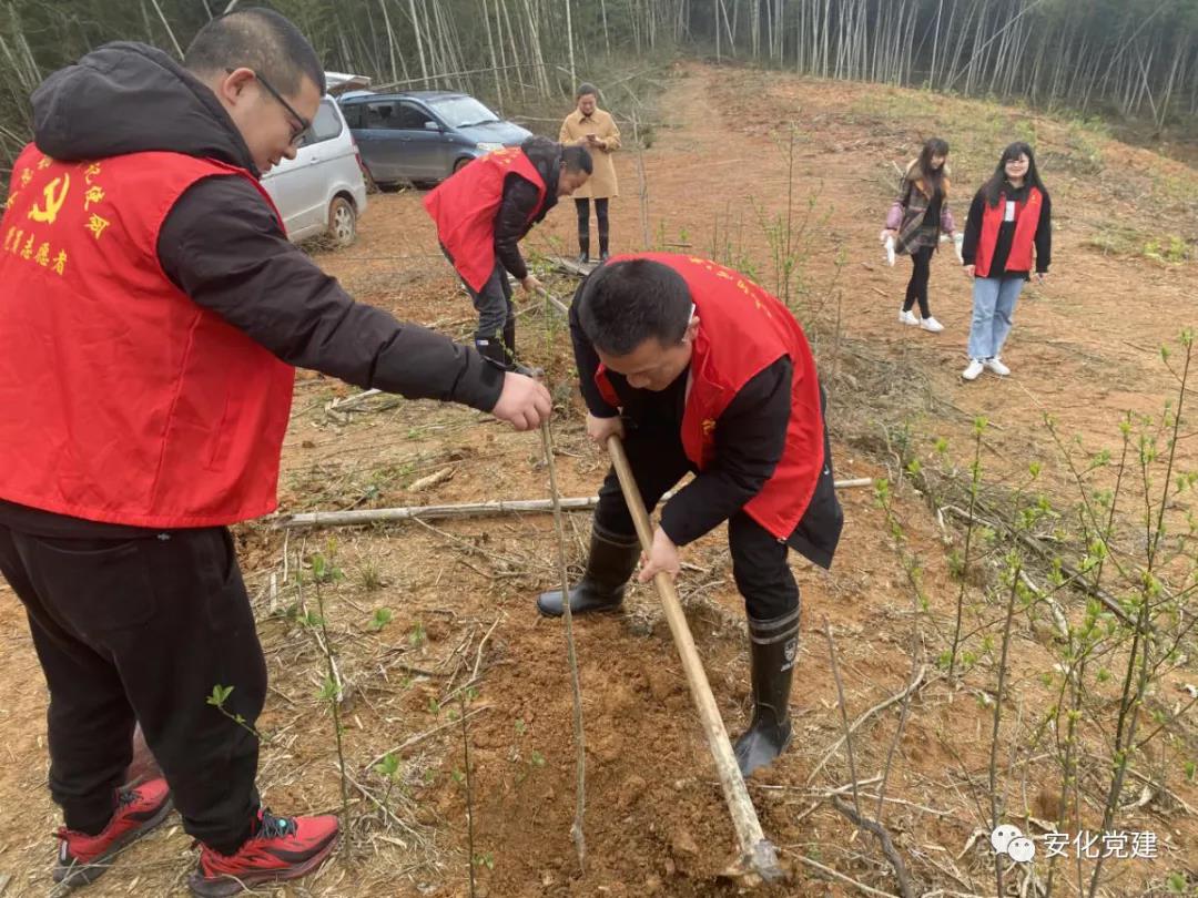 10余名党员干部一起挥锄头,播绿、挖坑、扶苗、埋土、踩实,大家分工协作、相互配合、干劲十足。一颗颗树苗,一个个美好的心愿,村支两委成员纷纷表示,初生的生命迎风招展,焕发盎然生机,大家会认真看护好集体林,和它们一同在福泉成长。