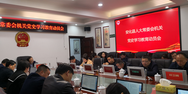 3月24日上午,安化县人大常委会机关支部召开主题党日活动暨党史学习教育动员会,县人大常委会党组书记、主任李太源作动员讲话,县人大常委会党组副书记、副主任姚国良主持会议,县人大常委会副主任肖伟群、张勇出席会议,全体机关干职工参加。 动员会上,张勇宣读了人大机关支部2020年度优秀共产党员表彰通报和党史学习教育实施方案,李太源为10位受表彰的优秀共产党员颁奖并作动员讲话。动员会上,常委会党组理论学习中心组还组织了党史教育集中学习,邀请县委党校宣讲团蒋吉军老师做了题为《中国共产党百年辉煌》的党课辅导,参会党员领导干部围绕“学史明理”主题进行研讨发言。 会议指出,开展党史学习教育,是党中央立足党的百年历史新起点、统筹中华民族伟大复兴战略全局和世界百年未有之大变局、为动员全党全国满怀信心投身全面建设社会主义现代化国家而作出的重大决策,是牢记初心使命、推进中华民族伟大复兴历史伟业的必然要求,是坚定信仰信念、在新时代坚持和发展中国特色社会主义的必然要求,是推进党的自我革命、永葆党的生机活力的必然要求。 会议要求,深入学习党的不懈奋斗史,深刻铭记中国共产党为国家和民族作出的伟大贡献,始终掌握党和国家事业发展历史。深入学习党的为民服务史,深刻感悟中国共产党始终不渝为人民的初心宗旨,始终保持马克思主义政党的鲜明本色。深入学习党的理论创新史,系统掌握中国共产党推进马克思主义中国化形成的重大理论成果,始终用党的创新理论武装头脑、指导实践、推动工作。深入学习党的精神锻造史,传承弘扬中国共产党在长期奋斗中铸就的伟大精神,始终保持艰苦奋斗、开拓进取的昂扬斗志。深入学习党的自我革命史,深刻领会中国共产党不断从胜利走向胜利的宝贵经验,始终站在时代潮流最前列,站在攻坚克难最前沿,站在最广大人民之中。深入学习党的湖南发展史、益阳发展史、安化发展史,系统了解发生在三湘大地特别是安化的重大事件、英雄壮歌、先进事迹,自觉从党的光辉历史中汲取砥砺奋进的精神力量。