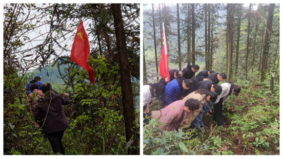 最后党员们沿着崎岖的小路来到烈士陵墓祭扫,党员们深深三鞠躬,表达了对烈士们最崇高的敬意,他们的思想光芒,将激励着党员们砥砺奋进,不断前行。