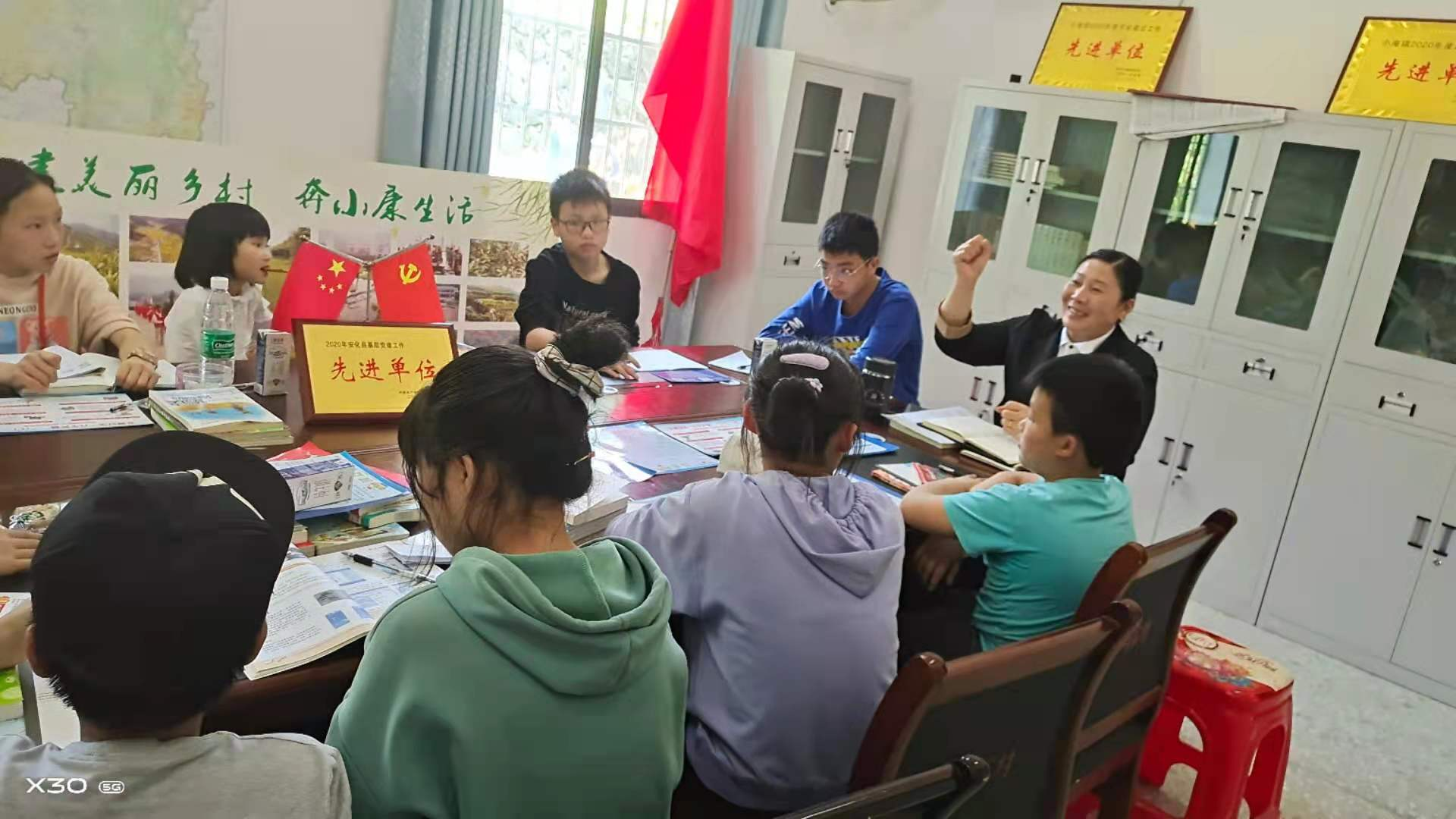 5月1日,小淹镇肖家村党支部组织放假学生在农家书屋开展学党史活动,丰富孩子们的假期生活。