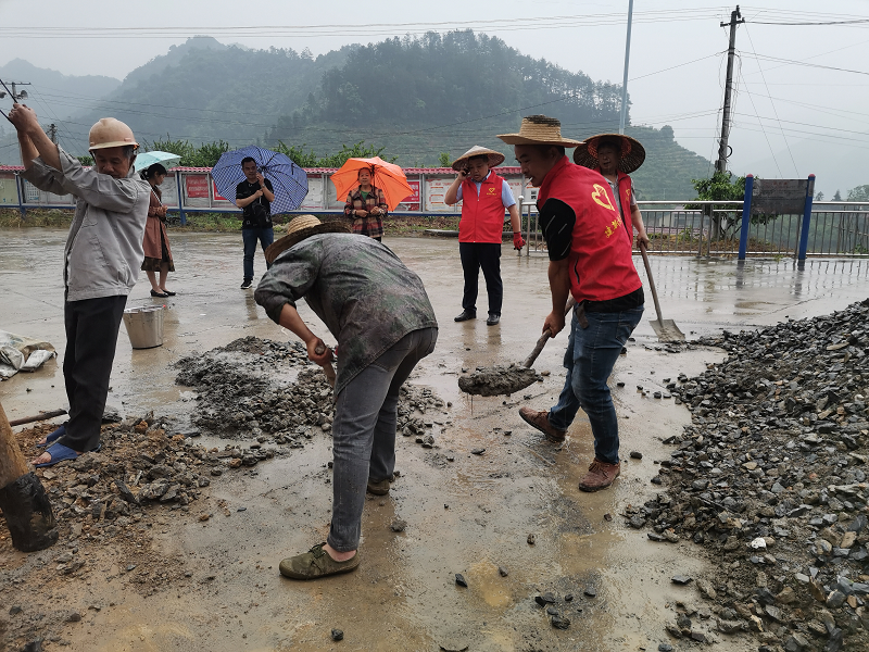 按照上级主题党日活动提示,完成规定动作之后,建新村党支部以党建引领,结合“我为群众办实事”实践活动,将主题党日活动开到了室外。顶着涓涓细雨,经过一个上午的会战,在建新村党支部全体党员和联村领导干部的努力下,一个崭新的篮球架成功屹立在村部文化广场,将成为村民又一休闲锻炼之地。