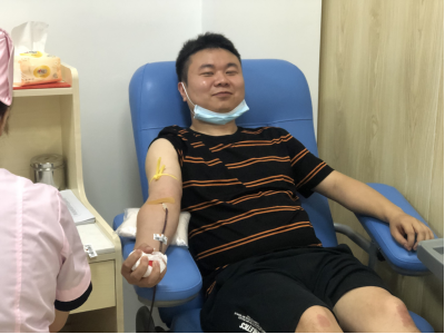 “看到单位发的通知后,我马上报了名,这是我第一次义务献血,心里也有些紧张,护士还说我手臂一直在抖,但能帮助到需要帮助的人,我觉得很光荣,做一件有意义的事是不应该犹豫的。”5133人才引进的青年干部夏晟在献血时说道。