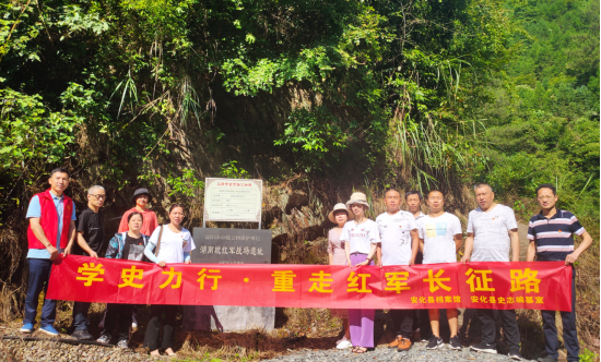 第一站到了马路镇的湖南坡战斗遗址,集体向烈士李楚才鞠躬致敬,学习湖南坡战斗的英雄事迹。第二站到了马路镇江溪村,了解红军长征集结江溪的史实史料,通过实地察看了解红军为什么会集结江溪。第三站参观了红军树,了解了红军树的历史,解读了红军树的故事。第四站到了烟溪镇,重走了卧龙村红军长征经过安化时走过的青石板路,现场学习了烟溪人民为红军赶制40条军裤的红色故事;到了双烟村,参观了第十一兵工厂的遗址遗迹,见证了历史的变迁。