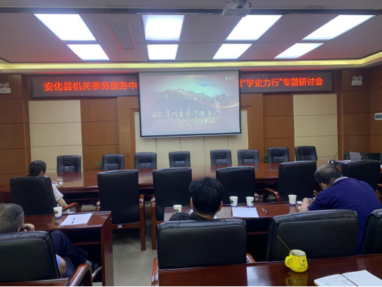 6月24日,安化县机关事务服务中心开展6、7月主题党日活动暨“学史力行”专题研讨,全体干职工参加会议。