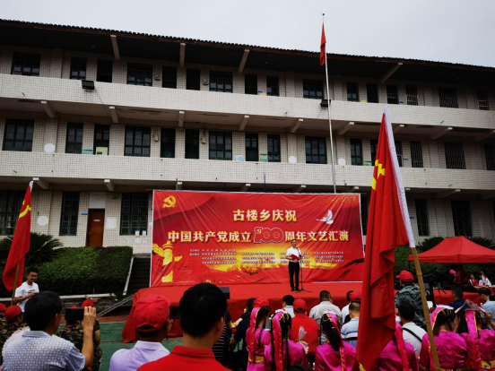 6月29日,为热烈庆祝中国共产党成立100周年,安化县古楼乡成功举办“礼赞百年路·奋进新时代”文艺汇演。 活动严格按照疫情防控工作要求开展,全乡10个村级党组织、机关党支部和中心学校党支部分别选送了1个以上的节目,近百名演职人员参加了汇演,600余名党员群众到现场观看了演出。 升国旗仪式完成后,古楼乡党委书记夏志勇代表乡党委致辞,向全乡共产党员致以节日的祝贺,向辛勤劳动在一线的广大党员和父老乡亲致以亲切的问候和崇高的敬意,向精心筹办本次文艺汇演的全体工作人员和演职人员表示衷心的感谢。 文艺汇演以腰鼓《没有共产党就没有新中国》拉开帷幕,舞蹈《五星红旗迎风飘扬》、歌舞《走进新时代》、诗歌朗诵《永远跟党走》、舞蹈《洗衣舞》、歌曲《精忠报国》、小号演奏《家和万事兴》、快板《疫情防控是大考》、舞蹈《中华全家福》、诗歌朗诵《栉风沐雨奔向往》等节目轮番登台,内容丰富、涵义深厚,充分表达了“庆祝中国共产党成立100周年”、“党史学习教育”、“家国情怀”、“劳动者、奋斗者”等核心内容,赢得了现场观众的阵阵掌声和欢呼声,引发了广大党员群众的深深共鸣。 最终,文艺汇演在《没有共产党就没有新中国》的合唱声中圆满闭幕,全体党员和志愿者对演出场地进行了清理和打扫。 此次文艺汇演,充分展现了古楼乡广大共产党员、劳动者和奋斗者的姿态与风采,激发了各行各业的正能量与创造力,统一了思想,振奋了精神,汇聚了力量。