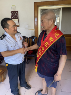 今年76岁的周诗诵1966年入党,至今党龄超过53年。唐岳峰来到周诗诵家,与老人促膝长谈,详细询问老人的身体状况和家庭情况。唐岳峰为周诗诵佩戴好“光荣在党50年”纪念章,并亲切的拉着老人的手说,马上就是建党100周年了,习近平总书记和党中央对老党员十分关心,我代表县局来看望您,祝您健康长寿,安享晚年。 随后唐岳峰一行来到困难党员罗健家中。在病床旁边,唐岳峰感谢老人长期以来对县局工作的关心和支持,在向老人送上党组织关怀的同时,还表示党组织永远是他们最坚强的后盾和最忠实的依靠。在交谈过程中,唐岳峰认真聆听了老人目前生活中存在的困难,并提出了解决措施,叮嘱老人要对生活充满信心。