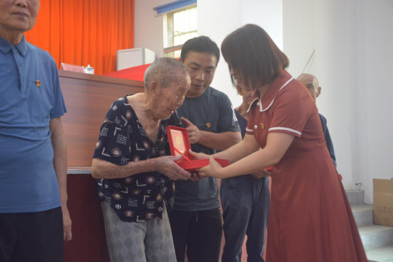 老党员是党和国家的宝贵财富,颁发纪念章是对老党员崇高信念和担当品行的充分肯定。颁发仪式上,党政领导逐一给纪念章荣获者授章,老党员怀着无比激动的心情接受授章。乐桥社区94岁高龄的老党员罗广生同志,拄着拐杖、让人搀扶着也坚持来会场,这份爱党情怀让人动容,他说道,“我很荣幸还能有机会见证中国共产党成立100周年,感谢党给我们颁发纪念章,感谢党还记得我们,我们的党永远不会忘记我们。”