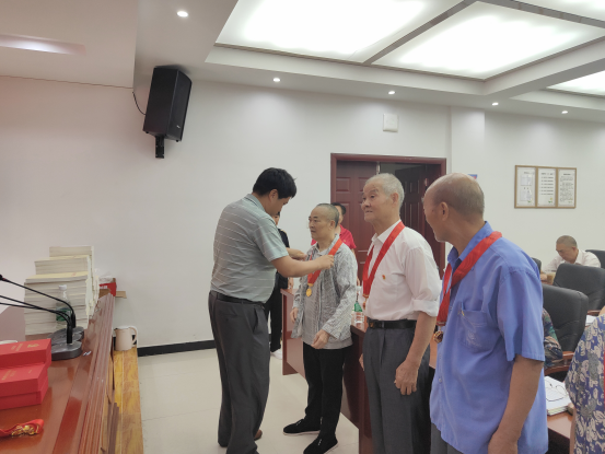 夏鹏翔主任向六位“光荣在党50周年”的老同志授予了纪念章。