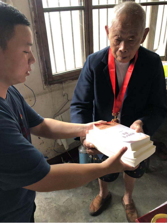 会后,为深化组织关怀、提升党员凝聚力,刘曙与胡毅军针对行动不便的老党员采取了送教上门的方式,为其送去了最新党史学习资料和党员身份纪念牌。