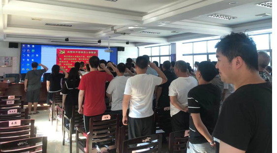 7月14日,安化县柘溪镇机关党总支召开了“党旗在基层一线高高飘扬”主题党日活动。 “我志愿加入中国共产党,拥护党的纲领,遵守党的章程……”在机关党员一声声响亮地宣读入党誓词中,七月主题党日活动开始了。