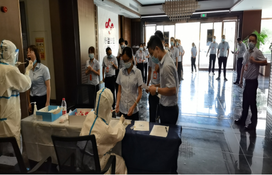 安化经开区在大型企业设立集中检测点提供核酸检测 “上门”服务。