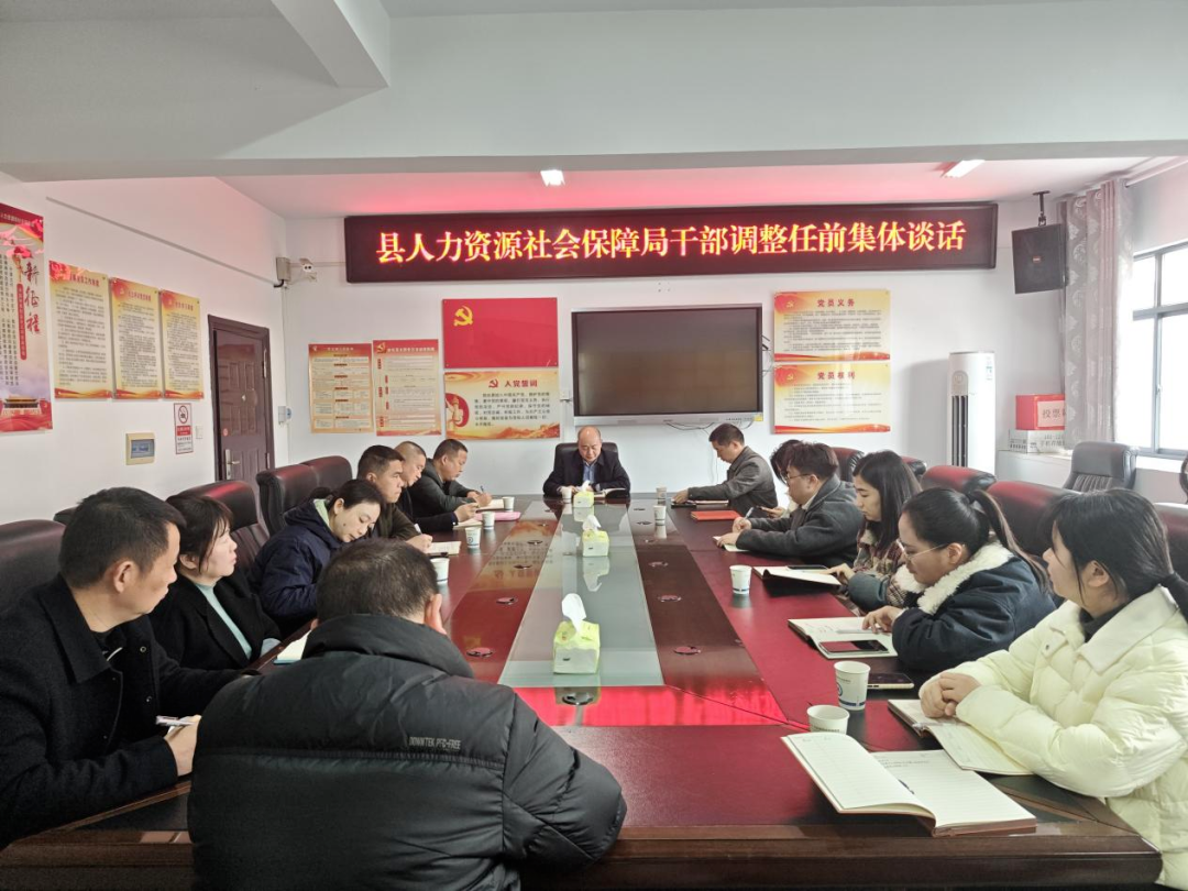▲1月15日,县人力资源和社会保障局召开干部调整任前集体谈话,会议要求新调整岗位干部提高政治站位,严守党纪法规,筑牢思想防线,自觉接受监督。(图/文 罗曼蒂克)